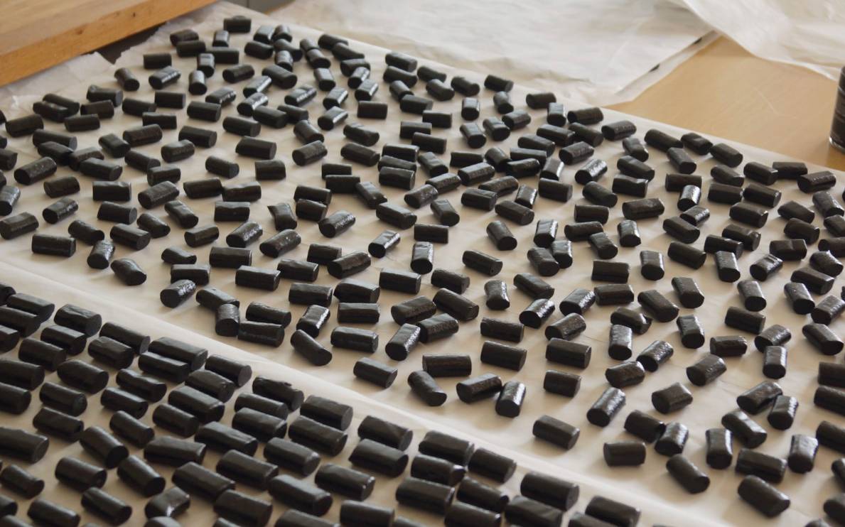 Our premium liquorice is made through an extensive slow-cooking process, stirred by hand throughout to ensure perfect texture and flavor. Just a single piece delivers a powerful taste experience. The liquorice is shaped using the family's authentic vintage machine, passed from Christos's childhood into the next generation's hands.